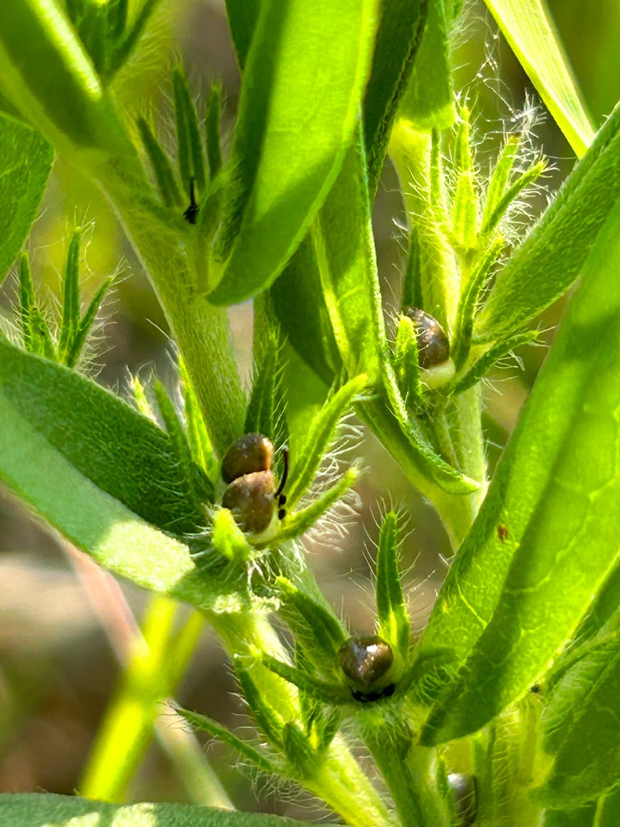 Before I cracked the code on germinating these plants, I would propagate them from root cuttings. I noticed while doing this that the blade of my knife would turn red! I worried that I had cut myself in the process, but discovered that it was the root itself producing the color! According to the US Forest Service, “The name ‘Puccoon’ comes from the word ‘poughkone,’ which is the name given to this plant by the Powhatan tribe who used the roots to make a red dye.” The children would chew on the roots with their gum to dye it red. Like so many native plants it is beautiful to behold and rich in the history of this place.